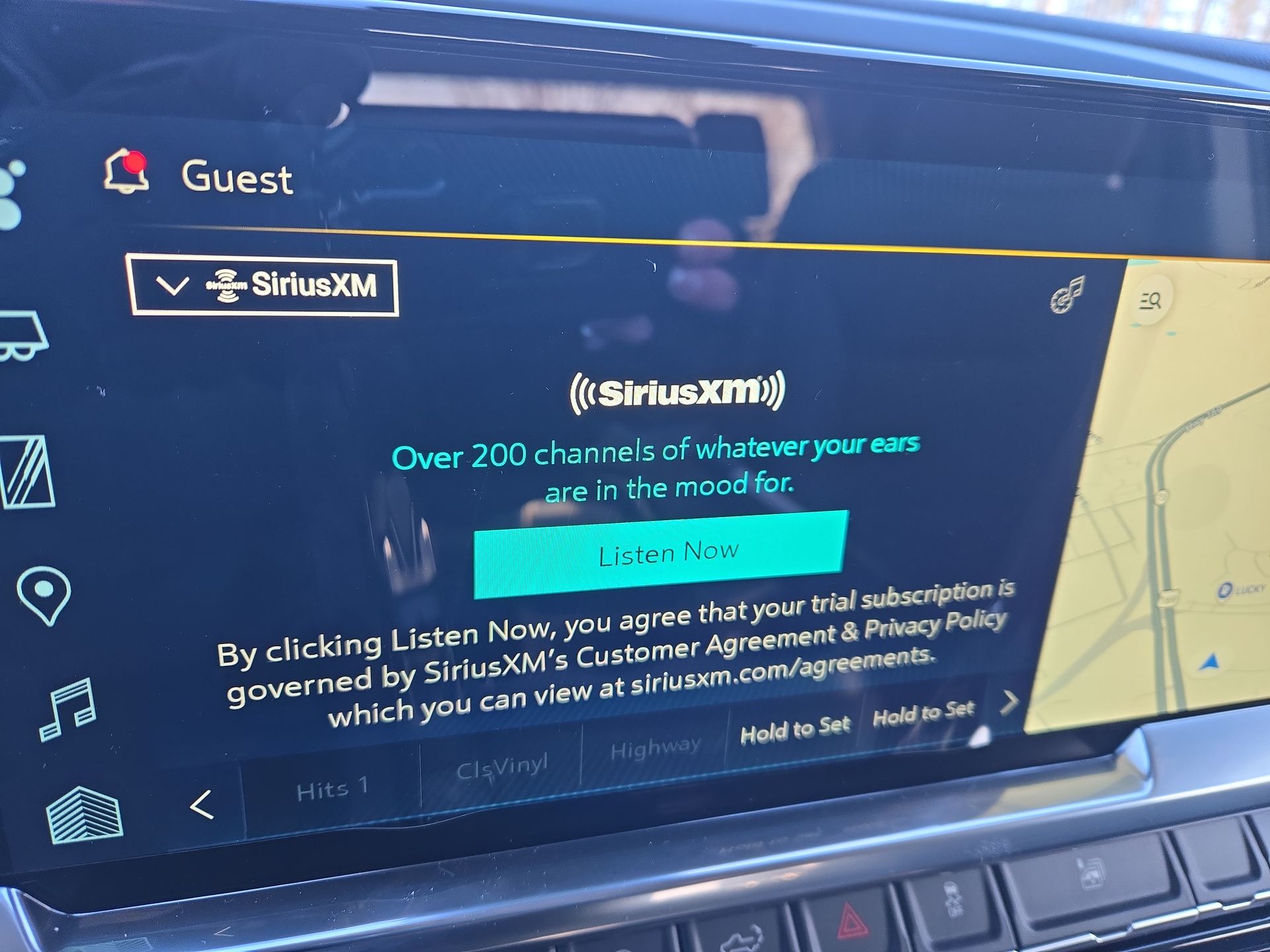 - With your trial subscription, new GM vehicles equipped with SiriusXM with 360L advance in-car technology will bring you closer to your favorite stars, artists, creators, hosts and athletes1